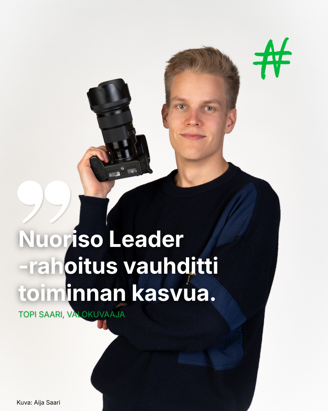 Topi Saari muutti Australiasta Ouluun ja alkoi kuvata yrityksille erityisesti videosisältöä markkinointiin ja näkyvyyden kasvattamiseen. Oulun seudun 500. Nuoriso Leader -rahoituksen saaja.