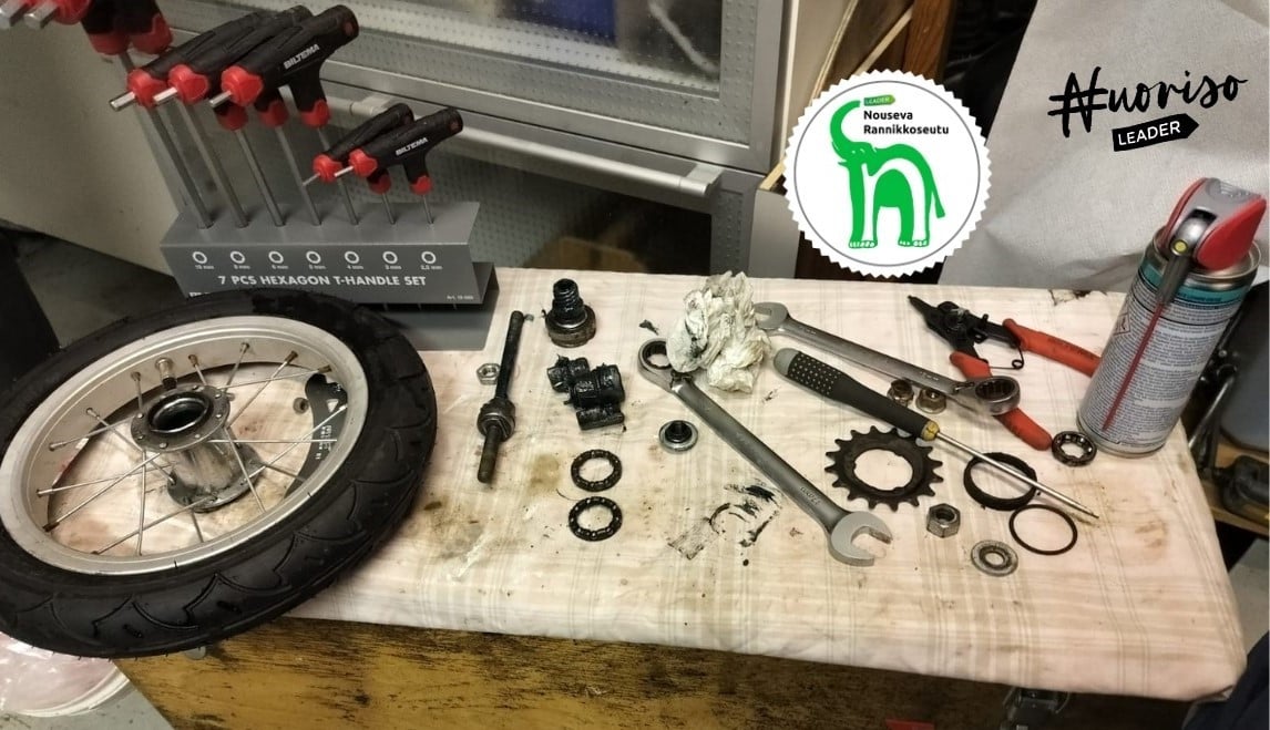 Mitä projektissa tehtiin: Peetun pyöränkorjaamo on yritys, joka ostaa rikkonaisia pyöriä, korjaa ne ja myy eteenpäin. Lisäksi tehdään polkupyörän huoltoja. Yritys tarvitsi työkaluja tehostaakseen toimintaa.